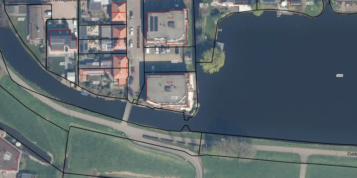 Het perceel waarop Torenstraat 56 staat heeft een oppervlakte van 680 m². Dit is een groot perceel. De perceeloppervlakte wordt geregistreerd door het Kadaster. Gedetailleerde informatie over de maten van dit perceel kunt u vinden in het rapport Kadastrale kaart met maatvoering van Torenstraat 56.