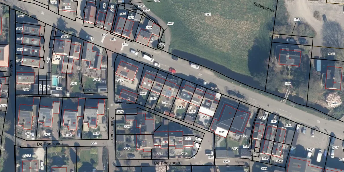 Voorweg 19 is gelegen op kadastraal perceel HZW00E2092. Deze kadastrale aanduiding is uniek en wordt gebruikt door het Kadaster om eigendomsrechten en andere zakelijke rechten vast te leggen. Het perceel maakt onderdeel uit van de kadastrale gemeente Hazerswoude.