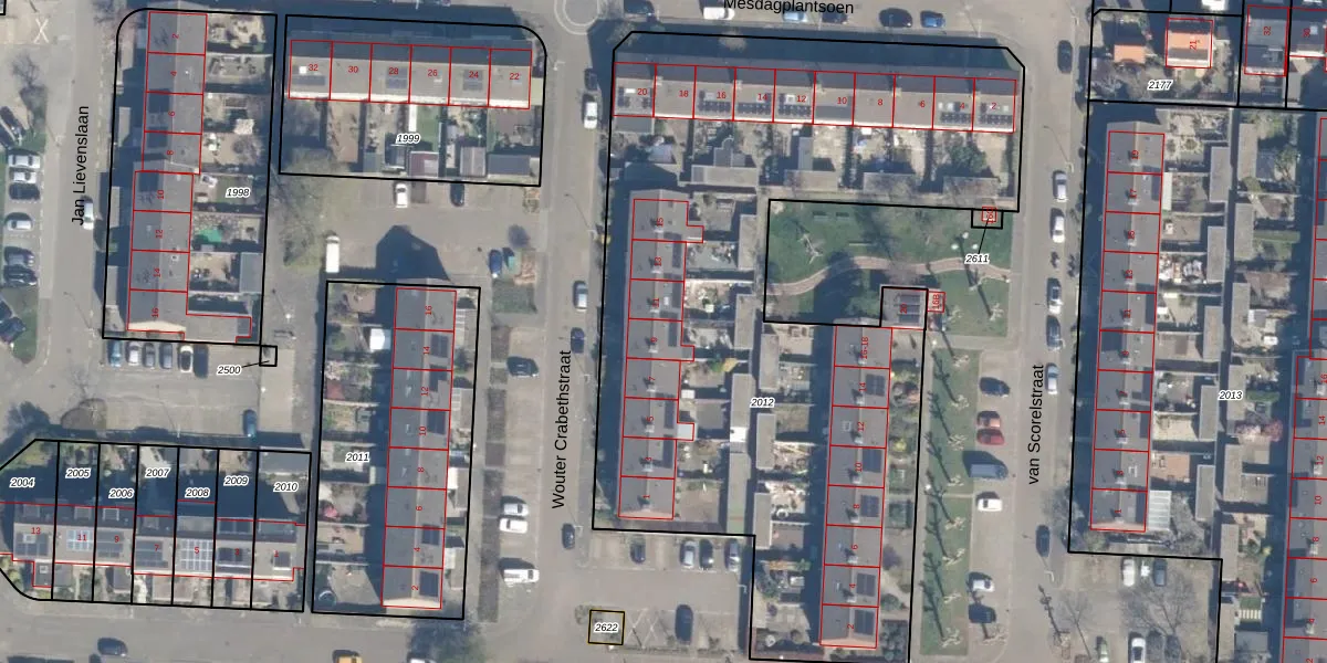 Het perceel waarop Wouter Crabethstraat 9 staat heeft een oppervlakte van 4010 m². Dit is een zeer groot perceel. De perceeloppervlakte wordt geregistreerd door het Kadaster. Gedetailleerde informatie over de maten van dit perceel kunt u vinden in het rapport Kadastrale kaart met maatvoering van Wouter Crabethstraat 9.