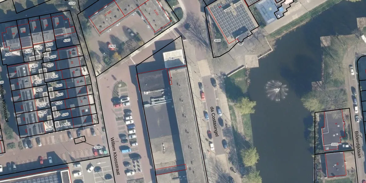 Het perceel waarop da Costasingel 6 staat heeft een oppervlakte van 3654 m². Dit is een zeer groot perceel. De perceeloppervlakte wordt geregistreerd door het Kadaster. Gedetailleerde informatie over de maten van dit perceel kunt u vinden in het rapport Kadastrale kaart met maatvoering van da Costasingel 6.