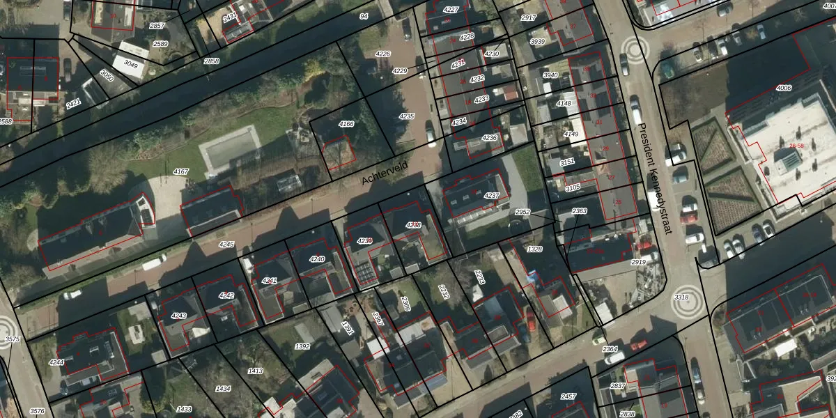 Achterveld 12 is gelegen op kadastraal perceel HDL01H4238. Deze kadastrale aanduiding is uniek en wordt gebruikt door het Kadaster om eigendomsrechten en andere zakelijke rechten vast te leggen. Het perceel maakt onderdeel uit van de kadastrale gemeente Hedel.