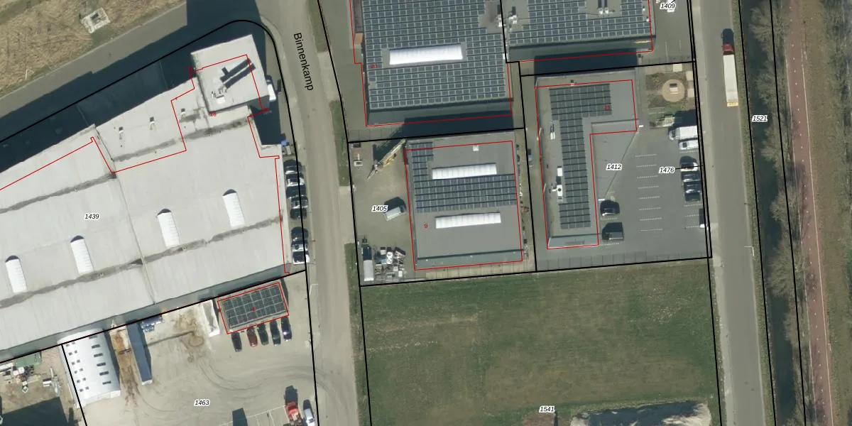 Het perceel waarop Binnenkamp 9 staat heeft een oppervlakte van 1410 m². Dit is een zeer groot perceel. De perceeloppervlakte wordt geregistreerd door het Kadaster. Gedetailleerde informatie over de maten van dit perceel kunt u vinden in het rapport Kadastrale kaart met maatvoering van Binnenkamp 9.
