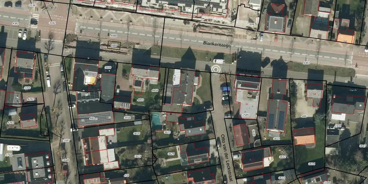 Het perceel waarop Blankensteijn 6 staat heeft een oppervlakte van 573 m². Dit is een groot perceel. De perceeloppervlakte wordt geregistreerd door het Kadaster. Gedetailleerde informatie over de maten van dit perceel kunt u vinden in het rapport Kadastrale kaart met maatvoering van Blankensteijn 6.