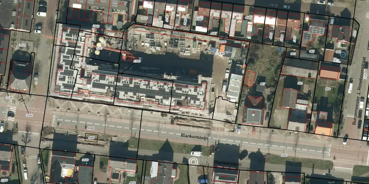 Het perceel waarop Blankensteijn 7-g staat heeft een oppervlakte van 2415 m². Dit is een zeer groot perceel. De perceeloppervlakte wordt geregistreerd door het Kadaster. Gedetailleerde informatie over de maten van dit perceel kunt u vinden in het rapport Kadastrale kaart met maatvoering van Blankensteijn 7-g.