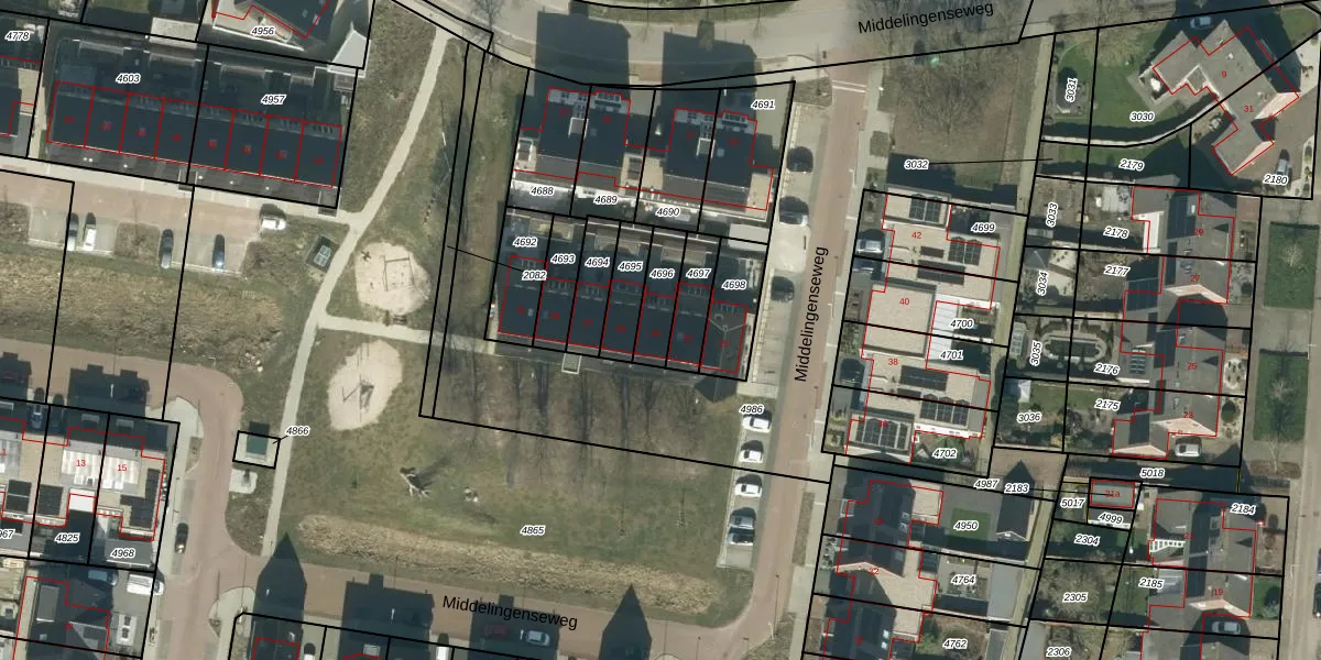 Het adres ligt op het perceel HDL01-H-4696, dat zich in de kadastrale gemeente Hedel bevindt. Het perceel is 107 m² groot. Dat is kleiner dan de gemiddelde perceeloppervlakte in Hedel, dat op 3425,22 m² ligt. Het grootste perceel in de kadastrale gemeente is 19,7 ha. Het kleinste perceel heeft een oppervlakte van 0 m². Dit is het enige adres dat aanwezig is op het perceel. De huidige grenzen van het perceel zijn digitaal in de Basisregistratie Kadaster (BRK) geregistreerd op 23-05-2024.