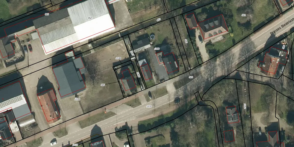 Het perceel waarop Prinses Beatrixstraat 11-a staat heeft een oppervlakte van 1187 m². Dit is een zeer groot perceel. De perceeloppervlakte wordt geregistreerd door het Kadaster. Gedetailleerde informatie over de maten van dit perceel kunt u vinden in het rapport Kadastrale kaart met maatvoering van Prinses Beatrixstraat 11-a.