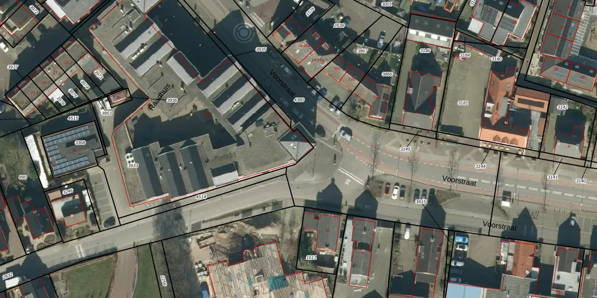 Het perceel waarop Raadhuis 4-a staat heeft een oppervlakte van 3564 m². Dit is een zeer groot perceel. De perceeloppervlakte wordt geregistreerd door het Kadaster. Gedetailleerde informatie over de maten van dit perceel kunt u vinden in het rapport Kadastrale kaart met maatvoering van Raadhuis 4-a.