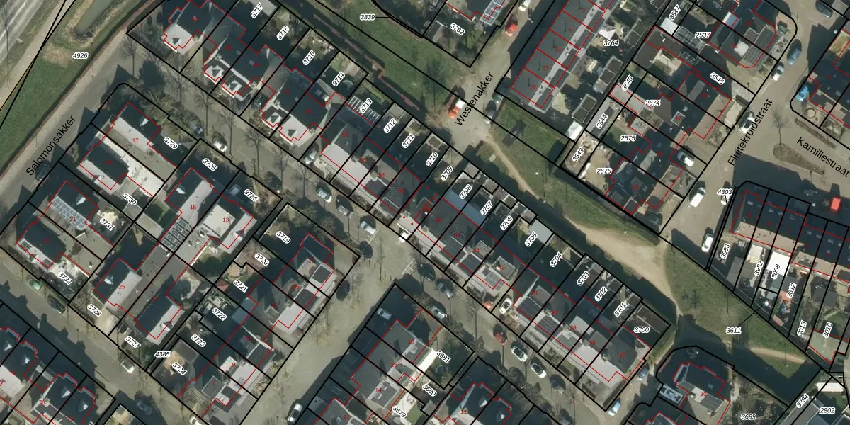 Gebruik de zoekbalk of klik op een perceel voor informatie over de adressen binnen dit perceel.