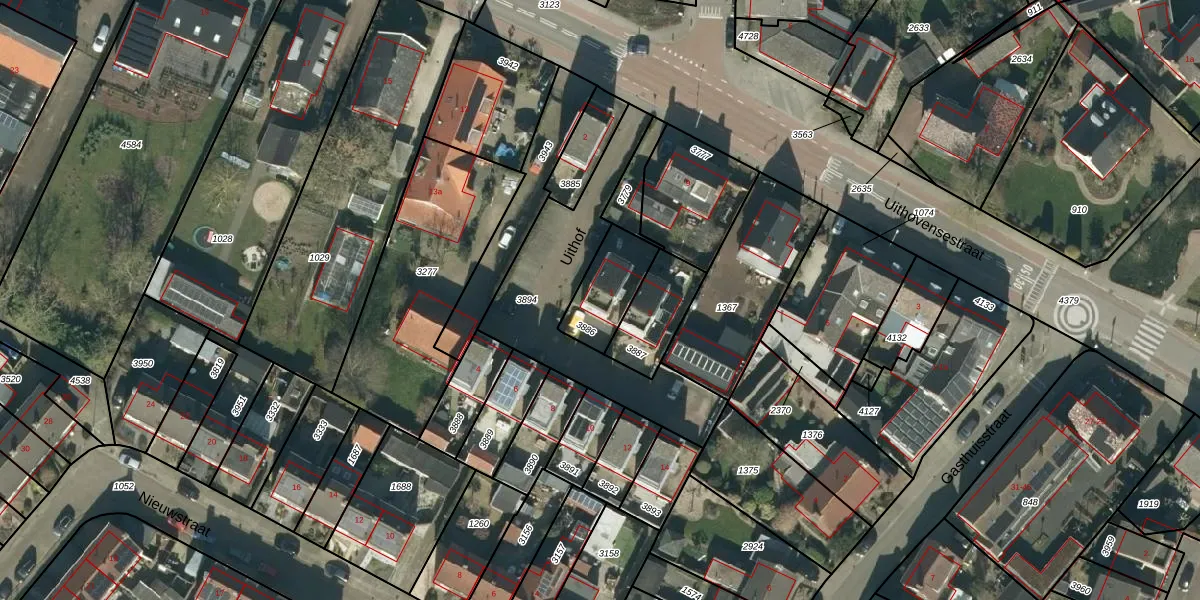 Het perceel waarop Uithof 1 staat heeft een oppervlakte van 178 m². Dit is een middelgroot perceel. De perceeloppervlakte wordt geregistreerd door het Kadaster. Gedetailleerde informatie over de maten van dit perceel kunt u vinden in het rapport Kadastrale kaart met maatvoering van Uithof 1.