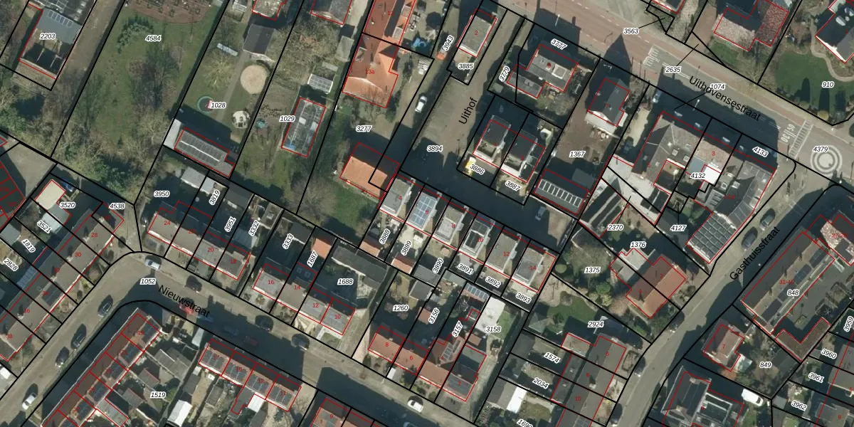Het perceel waarop Uithof 6 staat heeft een oppervlakte van 145 m². Dit is een middelgroot perceel. De perceeloppervlakte wordt geregistreerd door het Kadaster. Gedetailleerde informatie over de maten van dit perceel kunt u vinden in het rapport Kadastrale kaart met maatvoering van Uithof 6.