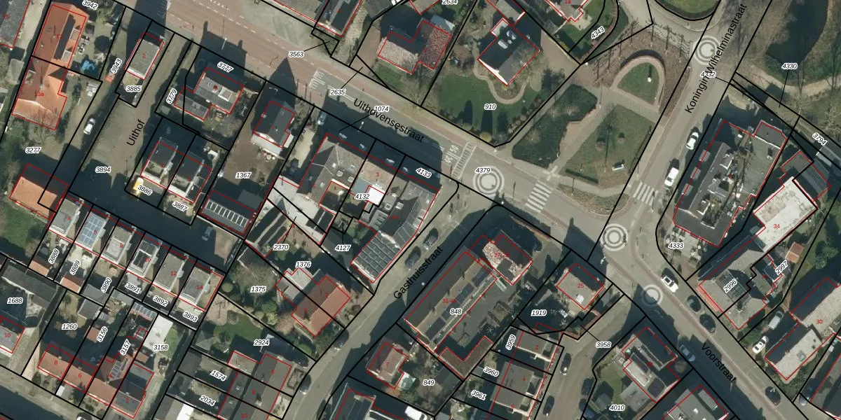 Het perceel waarop Uithovensestraat 1 staat heeft een oppervlakte van 447 m². Dit is een groot perceel. De perceeloppervlakte wordt geregistreerd door het Kadaster. Gedetailleerde informatie over de maten van dit perceel kunt u vinden in het rapport Kadastrale kaart met maatvoering van Uithovensestraat 1.