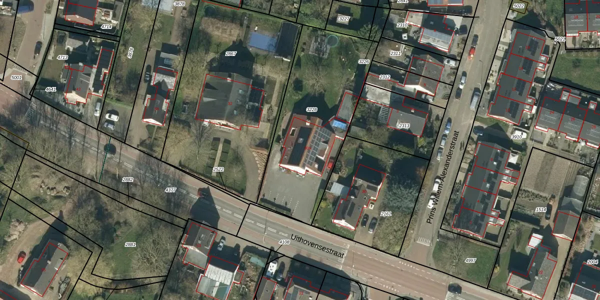 Het perceel waarop Uithovensestraat 30-a staat heeft een oppervlakte van 1429 m². Dit is een zeer groot perceel. De perceeloppervlakte wordt geregistreerd door het Kadaster. Gedetailleerde informatie over de maten van dit perceel kunt u vinden in het rapport Kadastrale kaart met maatvoering van Uithovensestraat 30-a.