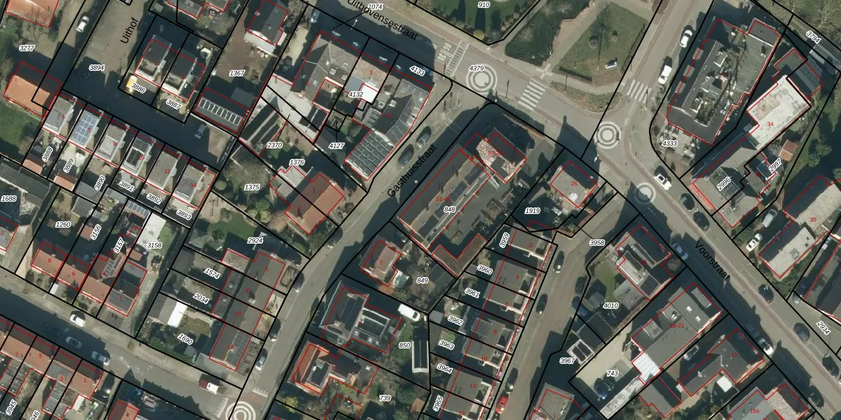 Het perceel waarop Voorstraat 43 staat heeft een oppervlakte van 840 m². Dit is een groot perceel. De perceeloppervlakte wordt geregistreerd door het Kadaster. Gedetailleerde informatie over de maten van dit perceel kunt u vinden in het rapport Kadastrale kaart met maatvoering van Voorstraat 43.