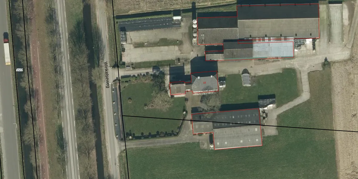Het perceel waarop Winkelseweg 18 staat heeft een oppervlakte van 10,3 ha. Dit is een zeer groot perceel. De perceeloppervlakte wordt geregistreerd door het Kadaster. Gedetailleerde informatie over de maten van dit perceel kunt u vinden in het rapport Kadastrale kaart met maatvoering van Winkelseweg 18.