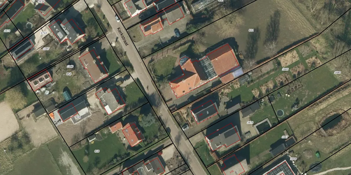 Kerkstraat 15-A is gelegen op kadastraal perceel HDN02G831. Deze kadastrale aanduiding is uniek en wordt gebruikt door het Kadaster om eigendomsrechten en andere zakelijke rechten vast te leggen. Het perceel maakt onderdeel uit van de kadastrale gemeente Heusden.
