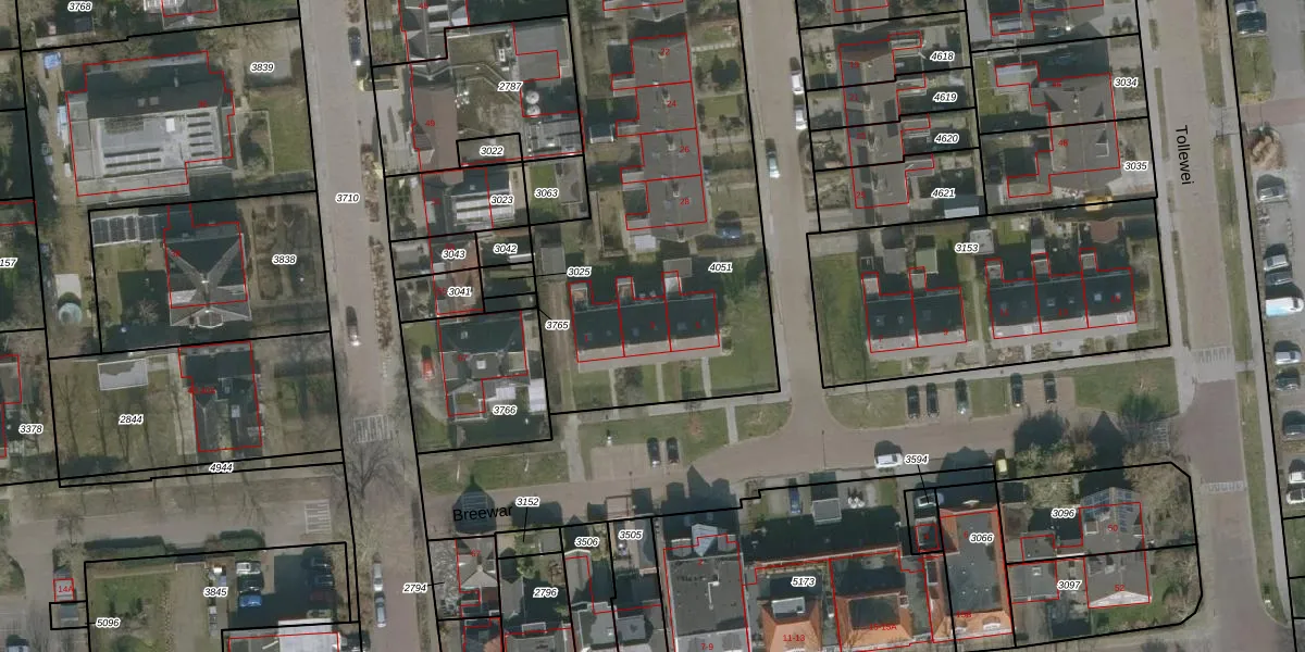 Het perceel waarop Breewar 3 staat heeft een oppervlakte van 2677 m². Dit is een zeer groot perceel. De perceeloppervlakte wordt geregistreerd door het Kadaster. Gedetailleerde informatie over de maten van dit perceel kunt u vinden in het rapport Kadastrale kaart met maatvoering van Breewar 3.