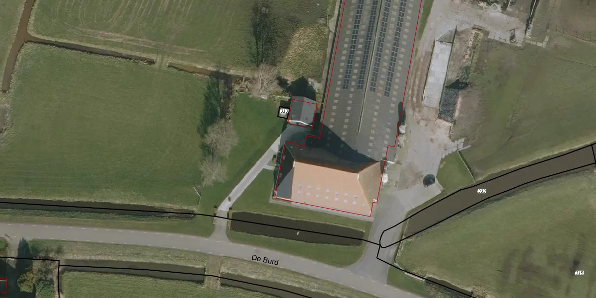 Het perceel waarop De Burd 1 staat heeft een oppervlakte van 27,5 ha. Dit is een zeer groot perceel. De perceeloppervlakte wordt geregistreerd door het Kadaster. Gedetailleerde informatie over de maten van dit perceel kunt u vinden in het rapport Kadastrale kaart met maatvoering van De Burd 1.