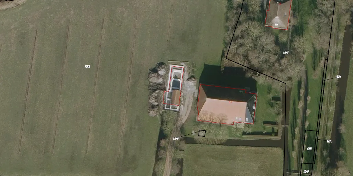 Het perceel waarop De Burd 11-A staat heeft een oppervlakte van 2,3 ha. Dit is een zeer groot perceel. De perceeloppervlakte wordt geregistreerd door het Kadaster. Gedetailleerde informatie over de maten van dit perceel kunt u vinden in het rapport Kadastrale kaart met maatvoering van De Burd 11-A.