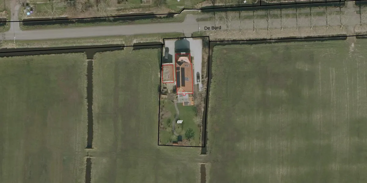 Het perceel waarop De Burd 16 staat heeft een oppervlakte van 1500 m². Dit is een zeer groot perceel. De perceeloppervlakte wordt geregistreerd door het Kadaster. Gedetailleerde informatie over de maten van dit perceel kunt u vinden in het rapport Kadastrale kaart met maatvoering van De Burd 16.