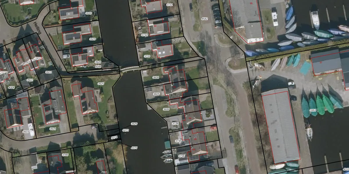 Het adres is gelegen op perceel 3605 in de sectie A en de kadastrale gemeente Heeg. De kadastrale aanduiding is aldus HEE04-A-3605. Het perceel is 349 m² groot. Dat is kleiner dan de gemiddelde perceeloppervlakte in Heeg, dat op 1,1 ha ligt. Het kleinste perceel in de kadastrale gemeente is 0 m² groot. De grootste perceeloppervlakte is 3,52 km². Op het perceel bevinden zich geen andere adressen. De huidige grenzen van het perceel zijn digitaal in de Basisregistratie Kadaster (BRK) geregistreerd op 06-12-2006.