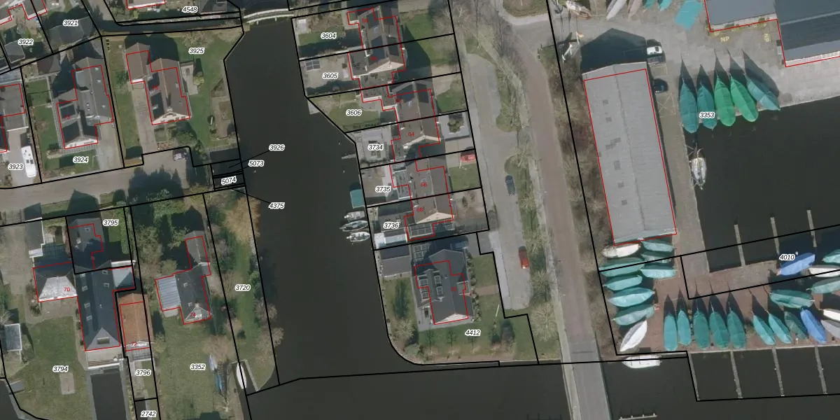 Het adres is gelegen op perceel 3736 in de sectie A en de kadastrale gemeente Heeg. De kadastrale aanduiding is aldus HEE04-A-3736. Het perceel is 287 m² groot. Dat is kleiner dan de gemiddelde perceeloppervlakte in Heeg, dat op 1,1 ha ligt. Het kleinste perceel in de kadastrale gemeente is 0 m² groot. De grootste perceeloppervlakte is 3,52 km². Dit is het enige adres dat aanwezig is op het perceel. In de Basisregistratie Kadaster (BRK) werden de grenzen van het perceel geregistreerd op 06-12-2006.