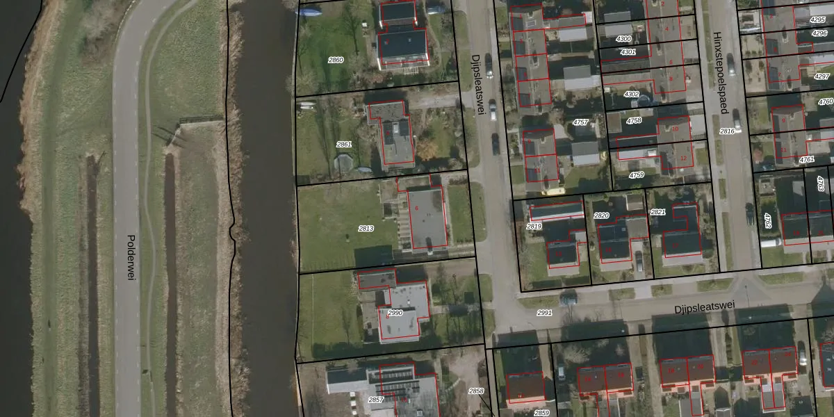Djipsleatswei 6 is gelegen op kadastraal perceel HEE04A2813. Deze kadastrale aanduiding is uniek en wordt gebruikt door het Kadaster om eigendomsrechten en andere zakelijke rechten vast te leggen. Het perceel maakt onderdeel uit van de kadastrale gemeente Heeg.