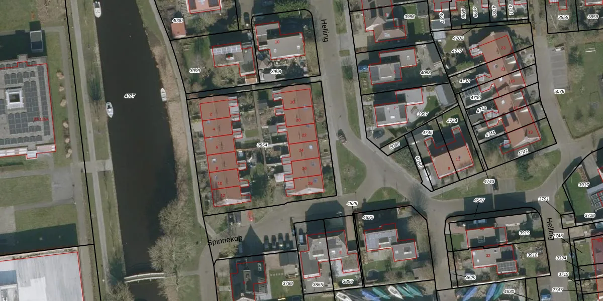 Het perceel waarop Helling 24 staat heeft een oppervlakte van 1739 m². Dit is een zeer groot perceel. De perceeloppervlakte wordt geregistreerd door het Kadaster. Gedetailleerde informatie over de maten van dit perceel kunt u vinden in het rapport Kadastrale kaart met maatvoering van Helling 24.