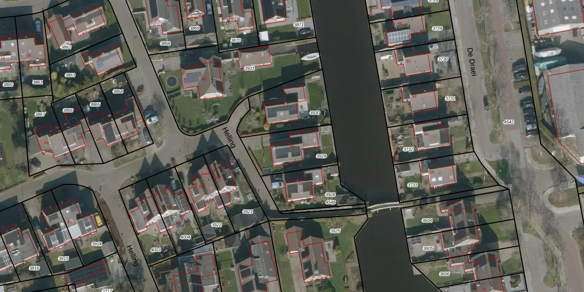 Het perceel waarop Helling 55 staat heeft een oppervlakte van 412 m². Dit is een groot perceel. De perceeloppervlakte wordt geregistreerd door het Kadaster. Gedetailleerde informatie over de maten van dit perceel kunt u vinden in het rapport Kadastrale kaart met maatvoering van Helling 55.