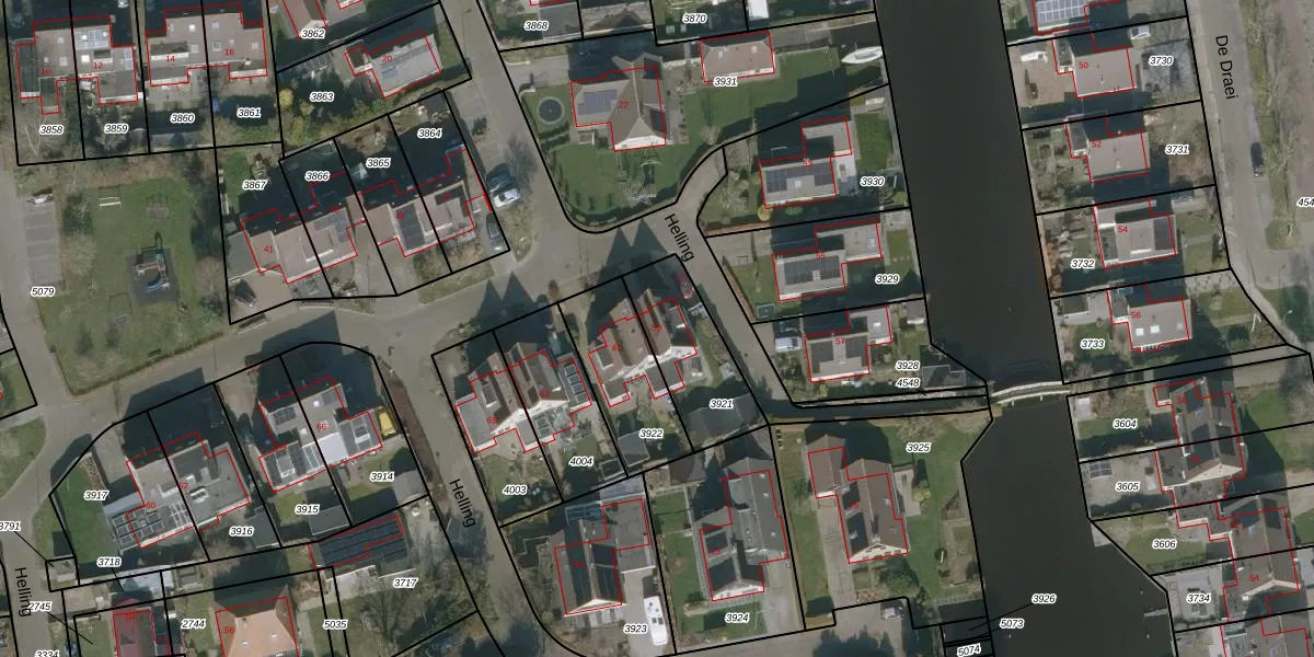 Het perceel waarop Helling 59 staat heeft een oppervlakte van 310 m². Dit is een groot perceel. De perceeloppervlakte wordt geregistreerd door het Kadaster. Gedetailleerde informatie over de maten van dit perceel kunt u vinden in het rapport Kadastrale kaart met maatvoering van Helling 59.