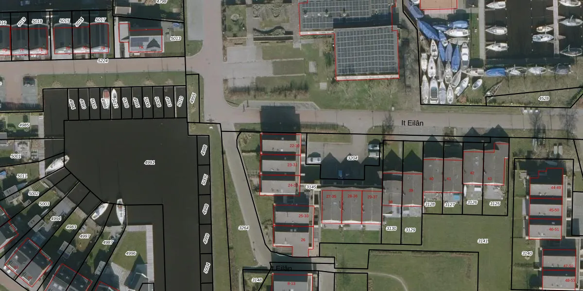 Het perceel waarop het adres ligt is HEE04-A-3145. De afkorting 'HEE04' staat voor kadastrale gemeente Heeg. De gemiddelde perceelgrootte in Heeg is 1,1 ha. Dit perceel is kleiner: de perceeloppervlakte bedraagt 1445 m². De grootste perceeloppervlakte in de kadastrale gemeente is 3,52 km². De kleinste oppervlakte bedraagt 0 m². Op het perceel zijn 15 adressen aanwezig. De huidige grenzen van het perceel zijn digitaal in de Basisregistratie Kadaster (BRK) geregistreerd op 16-06-2008.
