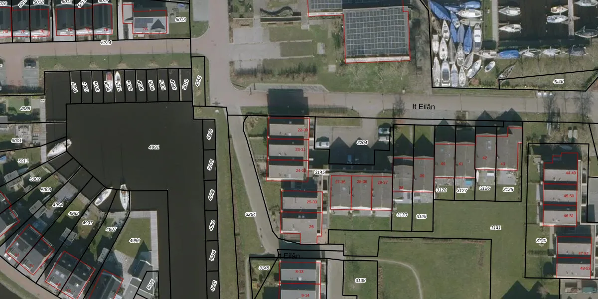 Het adres ligt op het perceel HEE04-A-3145, dat zich in de kadastrale gemeente Heeg bevindt. Het perceel is kleiner dan gemiddeld in Heeg. Het perceel is 1445 m² groot, terwijl het gemiddelde ligt op 1,1 ha. De grootste perceeloppervlakte in de kadastrale gemeente is 3,52 km². De kleinste oppervlakte bedraagt 0 m². Er zijn 15 adressen aanwezig op het perceel. In de Basisregistratie Kadaster (BRK) werden de grenzen van het perceel geregistreerd op 16-06-2008.