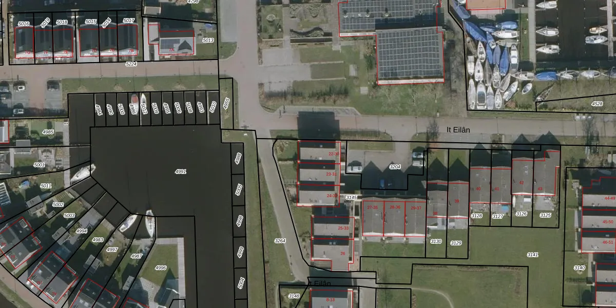 Het perceel waarop It Eilân 30 staat heeft een oppervlakte van 1445 m². Dit is een zeer groot perceel. De perceeloppervlakte wordt geregistreerd door het Kadaster. Gedetailleerde informatie over de maten van dit perceel kunt u vinden in het rapport Kadastrale kaart met maatvoering van It Eilân 30.