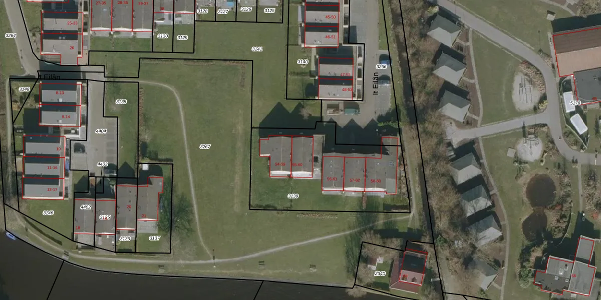 Het perceel waarop It Eilân 60 staat heeft een oppervlakte van 1321 m². Dit is een zeer groot perceel. De perceeloppervlakte wordt geregistreerd door het Kadaster. Gedetailleerde informatie over de maten van dit perceel kunt u vinden in het rapport Kadastrale kaart met maatvoering van It Eilân 60.