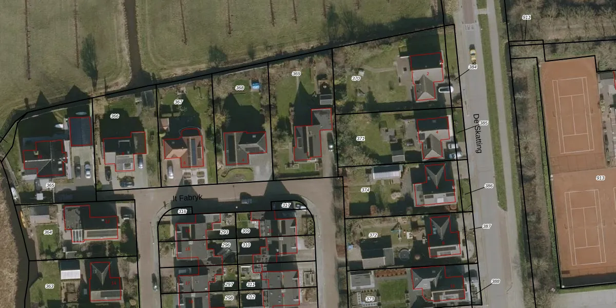 Het perceel waarop It Fabryk 2 staat heeft een oppervlakte van 847 m². Dit is een groot perceel. De perceeloppervlakte wordt geregistreerd door het Kadaster. Gedetailleerde informatie over de maten van dit perceel kunt u vinden in het rapport Kadastrale kaart met maatvoering van It Fabryk 2.
