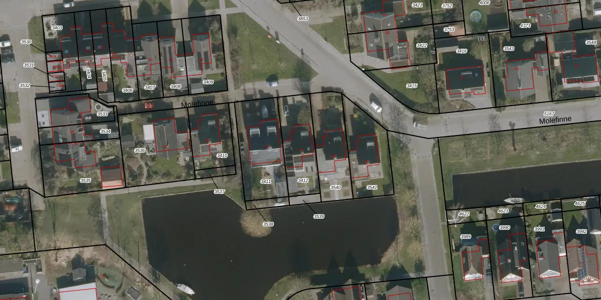 Molefinne 44 is gelegen op kadastraal perceel HEE04A3412. Deze kadastrale aanduiding is uniek en wordt gebruikt door het Kadaster om eigendomsrechten en andere zakelijke rechten vast te leggen. Het perceel maakt onderdeel uit van de kadastrale gemeente Heeg.