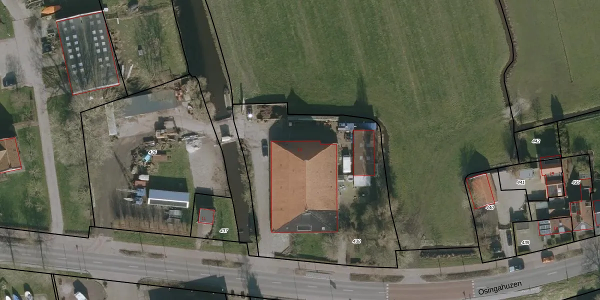 Osingahuzen 13 is gelegen op kadastraal perceel HEE04H438. Deze kadastrale aanduiding is uniek en wordt gebruikt door het Kadaster om eigendomsrechten en andere zakelijke rechten vast te leggen. Het perceel maakt onderdeel uit van de kadastrale gemeente Heeg.