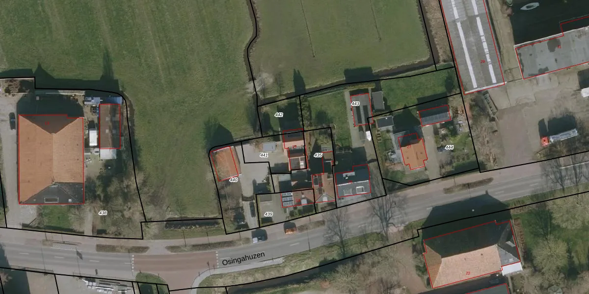 Osingahuzen 19 is gelegen op kadastraal perceel HEE04H441. Deze kadastrale aanduiding is uniek en wordt gebruikt door het Kadaster om eigendomsrechten en andere zakelijke rechten vast te leggen. Het perceel maakt onderdeel uit van de kadastrale gemeente Heeg.