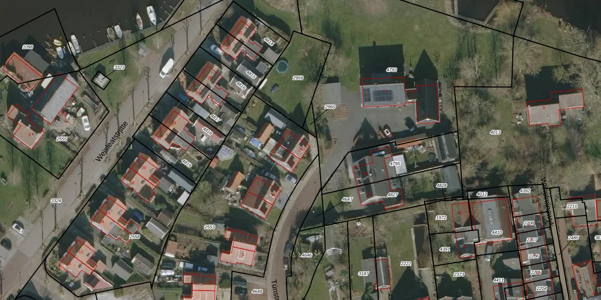 Het perceel waarop Túnstrjitte 15 staat heeft een oppervlakte van 2457 m². Dit is een zeer groot perceel. De perceeloppervlakte wordt geregistreerd door het Kadaster. Gedetailleerde informatie over de maten van dit perceel kunt u vinden in het rapport Kadastrale kaart met maatvoering van Túnstrjitte 15.