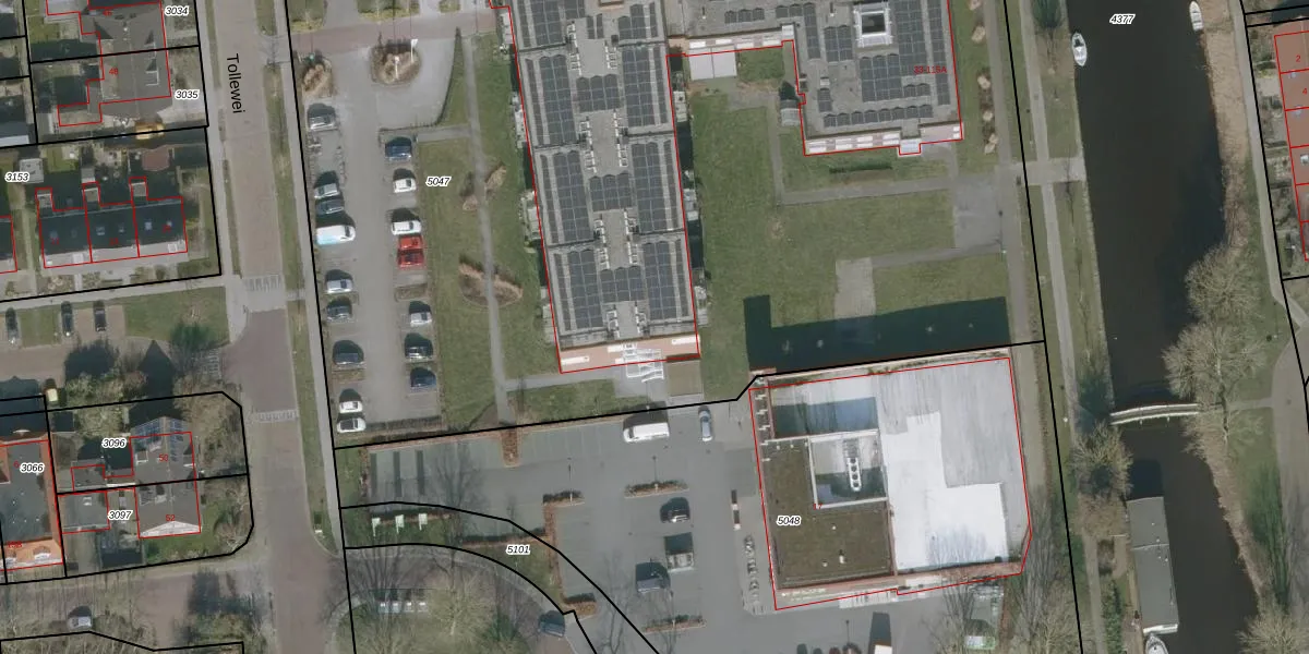 Het perceel waarop Tollewei 105 staat heeft een oppervlakte van 1,4 ha. Dit is een zeer groot perceel. De perceeloppervlakte wordt geregistreerd door het Kadaster. Gedetailleerde informatie over de maten van dit perceel kunt u vinden in het rapport Kadastrale kaart met maatvoering van Tollewei 105.
