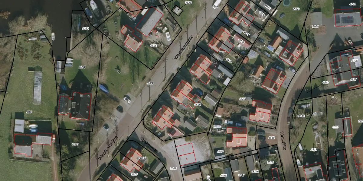 Weisleatstrjitte 16 is gelegen op kadastraal perceel HEE04A2558. Deze kadastrale aanduiding is uniek en wordt gebruikt door het Kadaster om eigendomsrechten en andere zakelijke rechten vast te leggen. Het perceel maakt onderdeel uit van de kadastrale gemeente Heeg.
