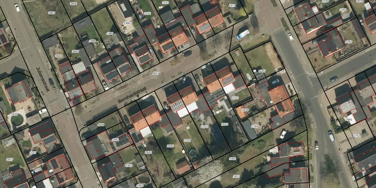 Bernhardstraat 8 is gelegen op kadastraal perceel HEE01C2262. Deze kadastrale aanduiding is uniek en wordt gebruikt door het Kadaster om eigendomsrechten en andere zakelijke rechten vast te leggen. Het perceel maakt onderdeel uit van de kadastrale gemeente Heel en Panheel.