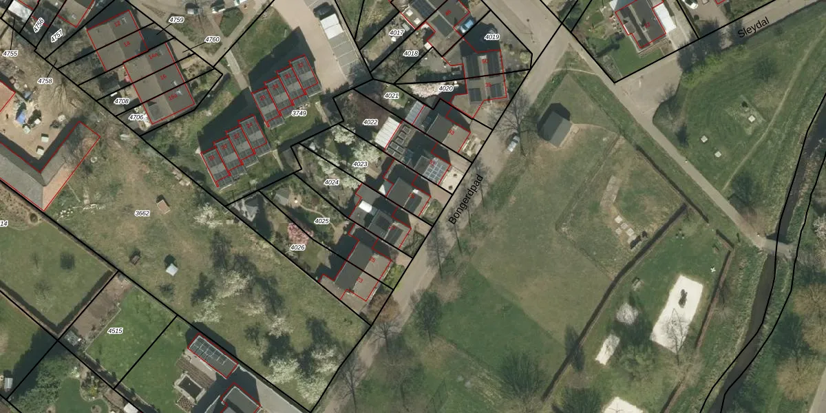Gebruik de zoekbalk of klik op een perceel voor informatie over de adressen binnen dit perceel.