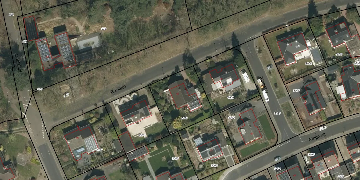 Het perceel waarop Boslaan 21 staat heeft een oppervlakte van 815 m². Dit is een groot perceel. De perceeloppervlakte wordt geregistreerd door het Kadaster. Gedetailleerde informatie over de maten van dit perceel kunt u vinden in het rapport Kadastrale kaart met maatvoering van Boslaan 21.