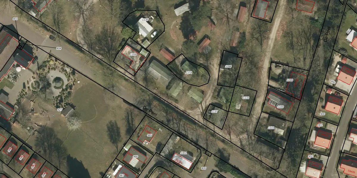 Het perceel waarop De Peel 13-j-2 staat heeft een oppervlakte van 39,0 ha. Dit is een zeer groot perceel. De perceeloppervlakte wordt geregistreerd door het Kadaster. Gedetailleerde informatie over de maten van dit perceel kunt u vinden in het rapport Kadastrale kaart met maatvoering van De Peel 13-j-2.