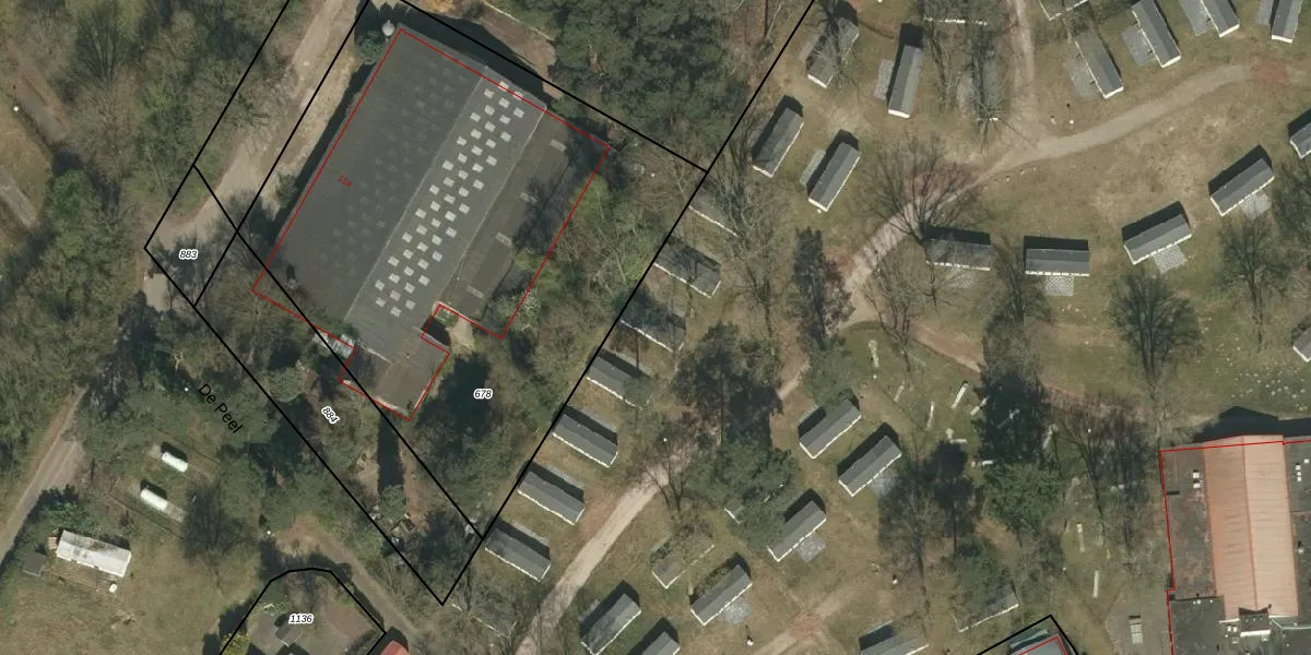 Het perceel waarop De Peel 13-d-605 staat heeft een oppervlakte van 39,0 ha. Dit is een zeer groot perceel. De perceeloppervlakte wordt geregistreerd door het Kadaster. Gedetailleerde informatie over de maten van dit perceel kunt u vinden in het rapport Kadastrale kaart met maatvoering van De Peel 13-d-605.