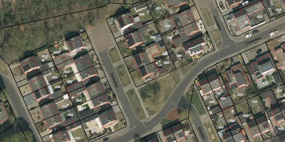 Gebruik de zoekbalk of klik op een perceel voor informatie over de adressen binnen dit perceel.
