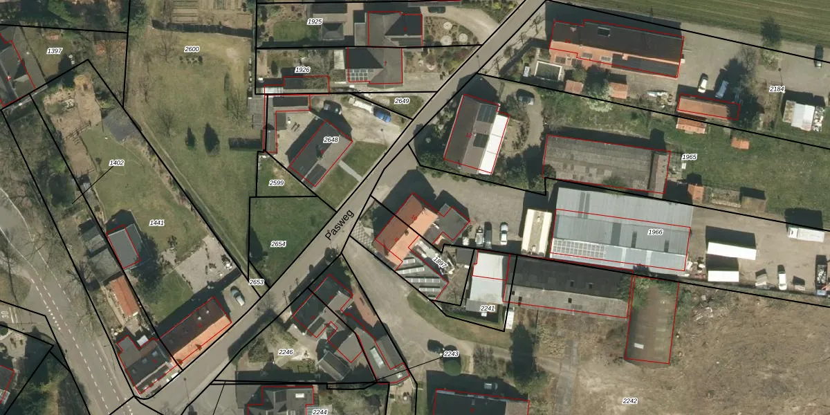 Het perceel waarop Pasweg 10 staat heeft een oppervlakte van 2110 m². Dit is een zeer groot perceel. De perceeloppervlakte wordt geregistreerd door het Kadaster. Gedetailleerde informatie over de maten van dit perceel kunt u vinden in het rapport Kadastrale kaart met maatvoering van Pasweg 10.
