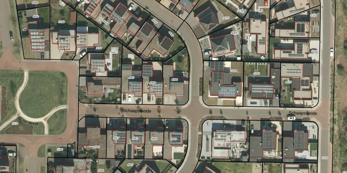 Het perceel waarop Schaapsweide 7 staat heeft een oppervlakte van 435 m². Dit is een groot perceel. De perceeloppervlakte wordt geregistreerd door het Kadaster. Gedetailleerde informatie over de maten van dit perceel kunt u vinden in het rapport Kadastrale kaart met maatvoering van Schaapsweide 7.