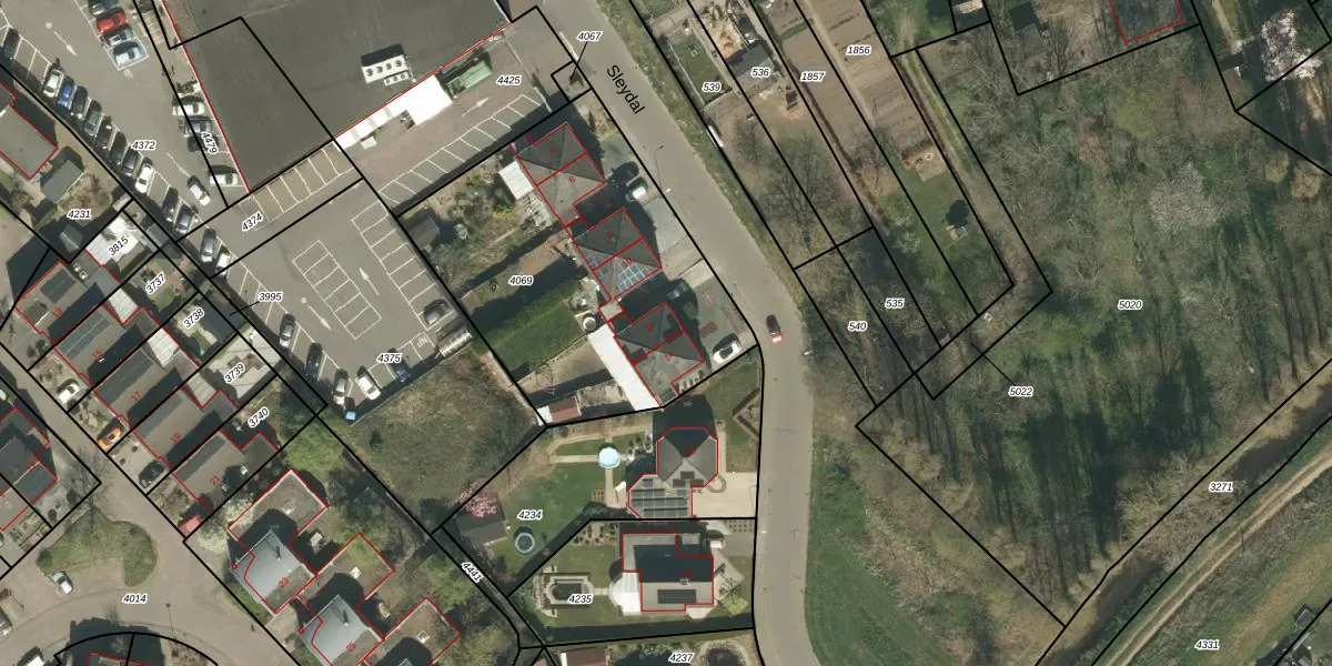 Het perceel waarop Sleydal 12 staat heeft een oppervlakte van 1516 m². Dit is een zeer groot perceel. De perceeloppervlakte wordt geregistreerd door het Kadaster. Gedetailleerde informatie over de maten van dit perceel kunt u vinden in het rapport Kadastrale kaart met maatvoering van Sleydal 12.
