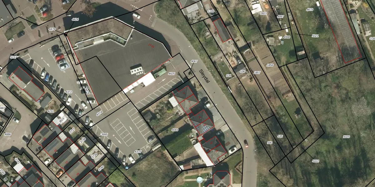 Het perceel waarop Sleydal 4 staat heeft een oppervlakte van 1516 m². Dit is een zeer groot perceel. De perceeloppervlakte wordt geregistreerd door het Kadaster. Gedetailleerde informatie over de maten van dit perceel kunt u vinden in het rapport Kadastrale kaart met maatvoering van Sleydal 4.
